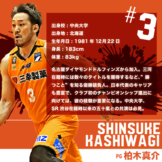 新潟の注目選手は、#3 PG/柏木真介。今シーズンはSGとしての出場がメインになっているが、相手チームのエースとのマッチアップでは持ち味のディフェンス力が光り、安定した戦いを続けるチームの中心として活躍を見せる。川村を封じ、チームに勝利をもたらすことができるか。柏木のプレーに注目だ。