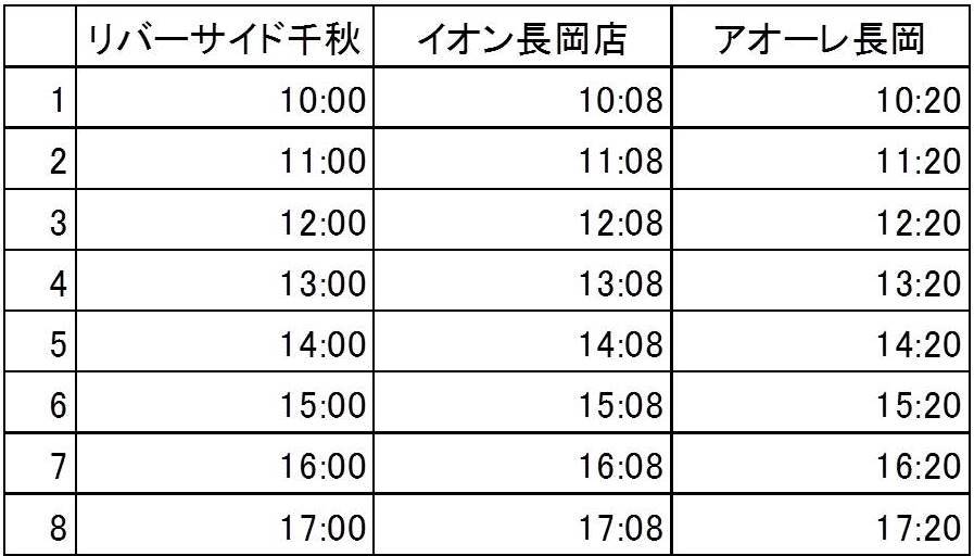 イオン長岡店、リバーサイド千秋よりアオーレ長岡行きの無料シャトルバスを運行いたします。