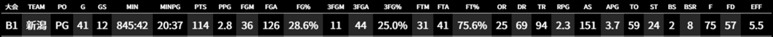 ※大学3年時(2017年2月~)に新潟アルビレックスBB特別指定選手としてプレー