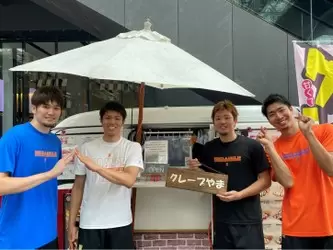 #3 大矢孝太朗選手、#13 柏倉哲平選手、#21 納見悠仁選手、#33 林翔太郎選手が考えたクレープが10月の試合会場で販売します!