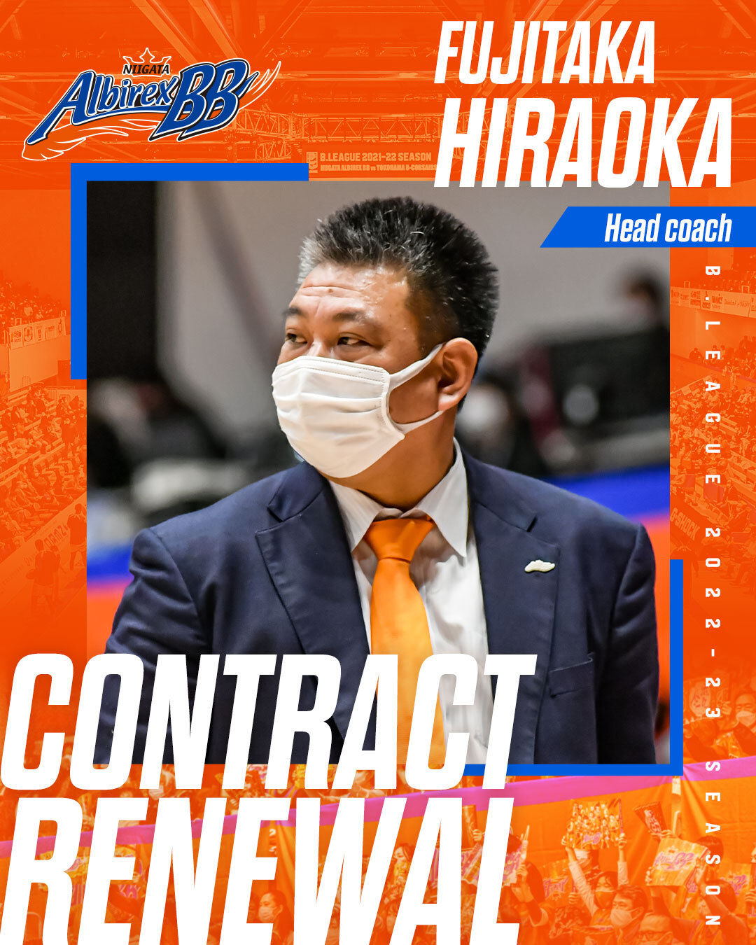 いつも新潟アルビレックスBBへ温かいご声援をいただき誠にありがとうございます。この度、平岡富士貴 ヘッドコーチとの契約合意に至りましたこと、大変うれしく思います。