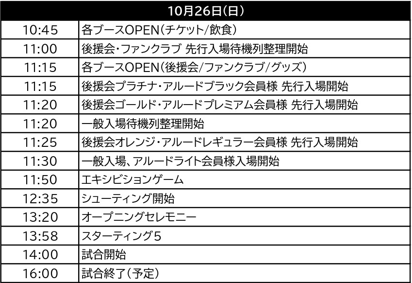 10月26日(日) 一般開場 11:30 試合開始 14:00 |