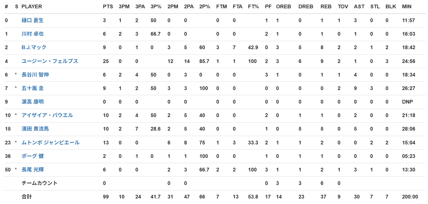 新潟アルビレックスBB 99-78 しながわシティバスケットボールクラブ