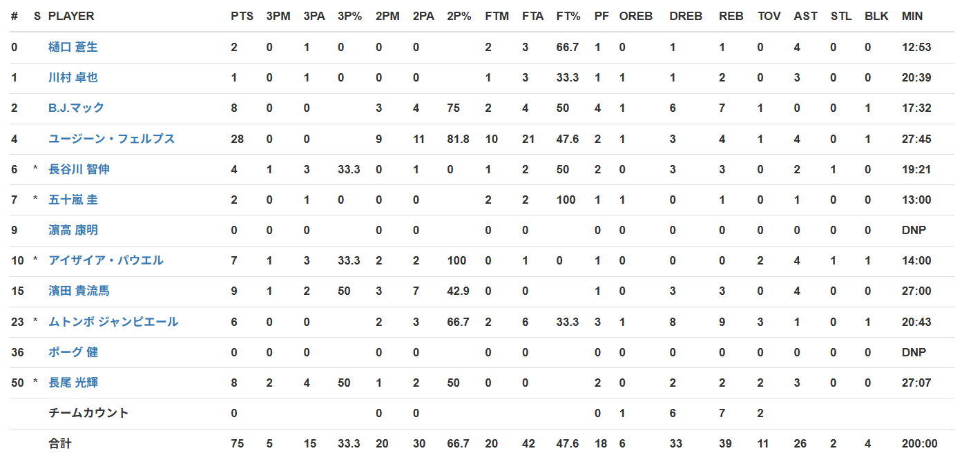 新潟アルビレックスBB 75-68 湘南ユナイテッドBC