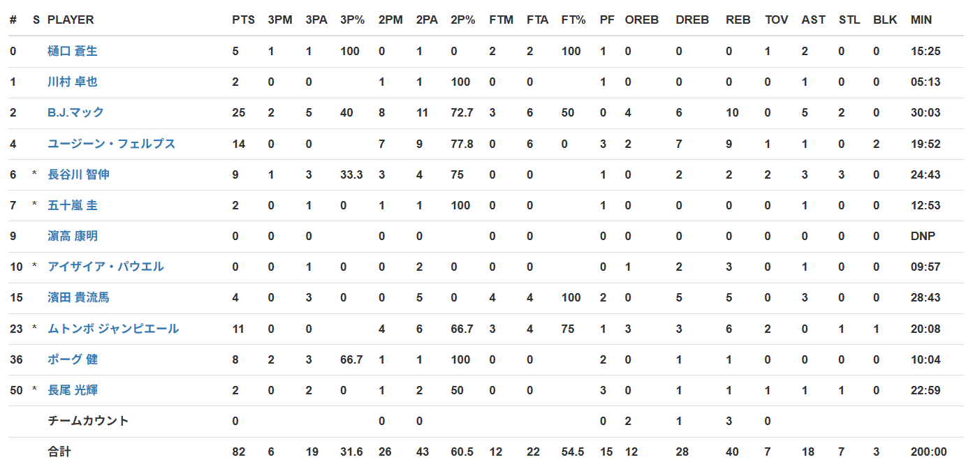 ▶ボックススコア(B3公式サイト)
