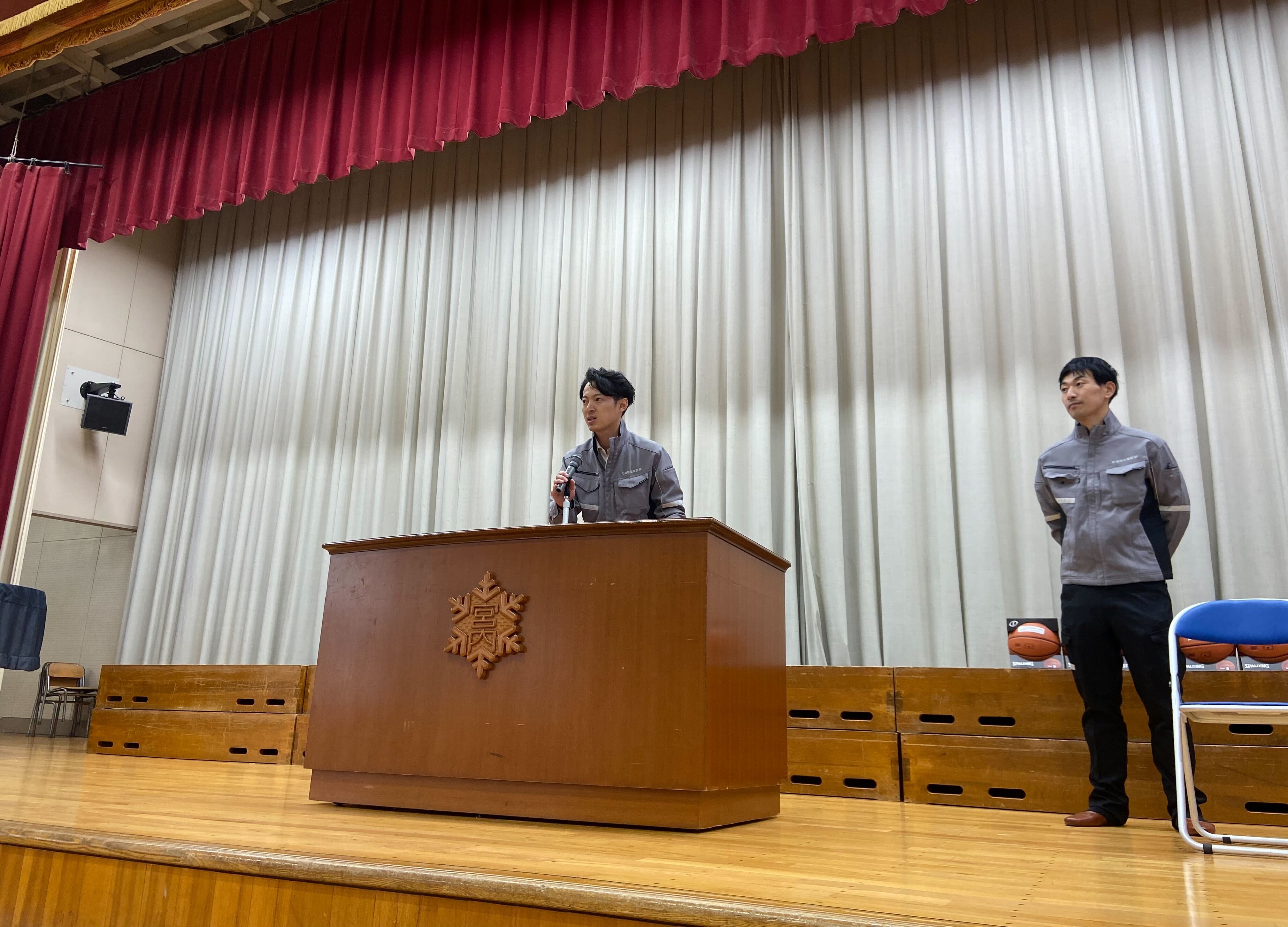 ■堀内社長が全校生徒へがスピーチをしました