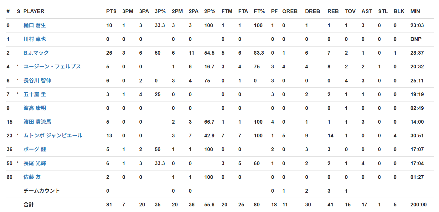 新潟アルビレックスBB 81-70 岐阜スゥープス
