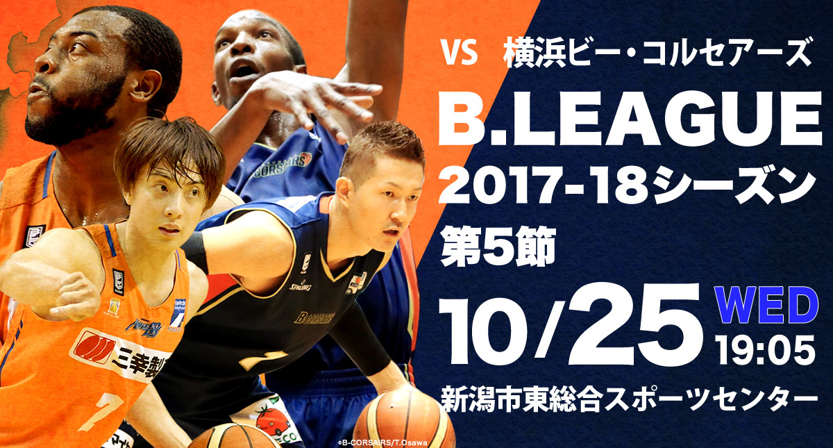 さて、10月25日(水)に新潟市東総合スポーツセンターで開催します『B.LEAGUE 2017-18シーズン B1リーグ 第5節 新潟リハビリテーション病院 サンクスデー「新潟アルビレックスBBvs横浜ビー・コルセアーズ」』のイベント情報をお知らせいたします。
